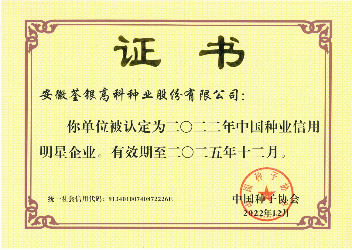 安徽荃銀高科種業股份有限公司是一家“以種業為核心、農業服務為延伸、探索和創新農業多元化發展”的現代高科技種業上市公司,證券代碼:300087。公司注冊資金9.47億元,系“中國種業領軍企業、農業產業化國家重點龍頭企業、國家高新技術企業、農業部首批農作物種子育繁推一體化企業、中國種業信用明星企業"。在國內控股子公司20多家,在國外設立分支機構4家,良種銷售至全國20多個?。ㄊ小^),出口覆蓋20多個國家與地區,種業綜合實力、雜交水稻研發、推廣及海外業務規模均居全國種子企業前2位。